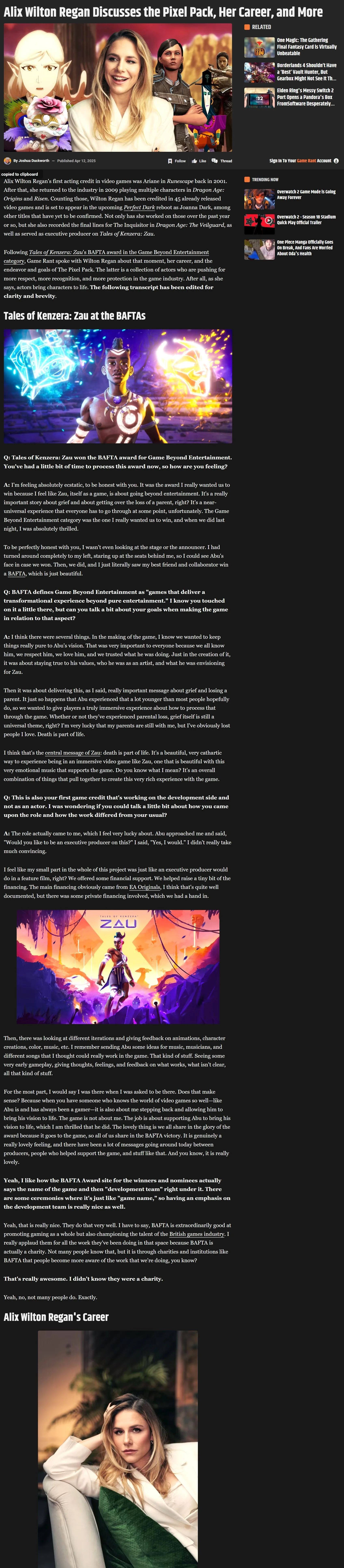 Link to article: Alix Wilton Regan Discusses the Pixel Pack, Her Career, and More Alix ReganAugust 22, 2025 Facebook0 Twitter LinkedIn0 Reddit Tumblr Pinterest0 0 Likes